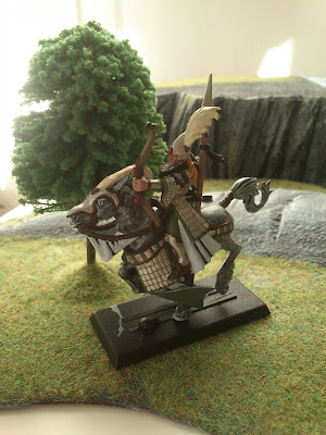 Next is the example of a just under basic Reaver, I completely made up the horse colours but that ended up being about 7 different layers. I'm happy with the results but might follow a simpler method next time I paint a horse. You can't tell from this picture but I think the green scheme work best on these models. In fact it was the Reaver's and Scouts that made me pick green and more of an advance army feel.